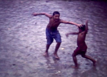 Witness the unbridled joy of childhood, as two little ones dance in the rain, their laughter and playfulness a reminder to cherish life's fleeting moments.